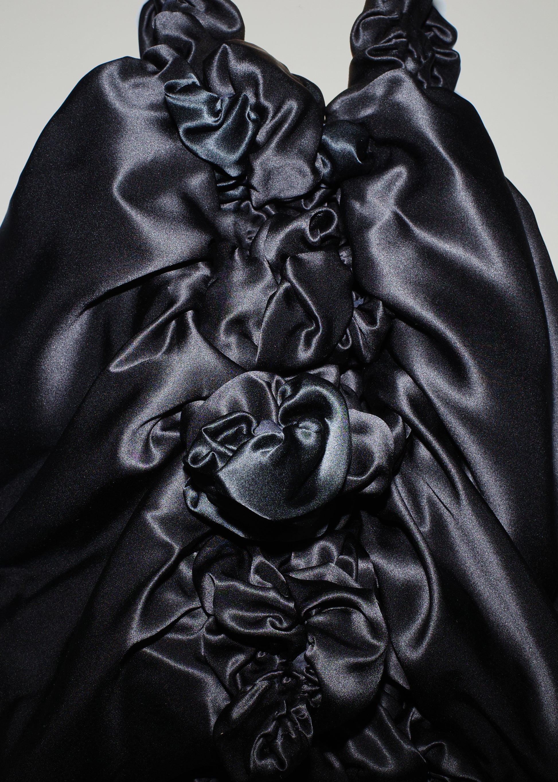 BAG - A VOLUMINOUS BAG WITH DRAMATIC RUCHING FOR ULTIMATE BOUNCE AND FLOUNCE.